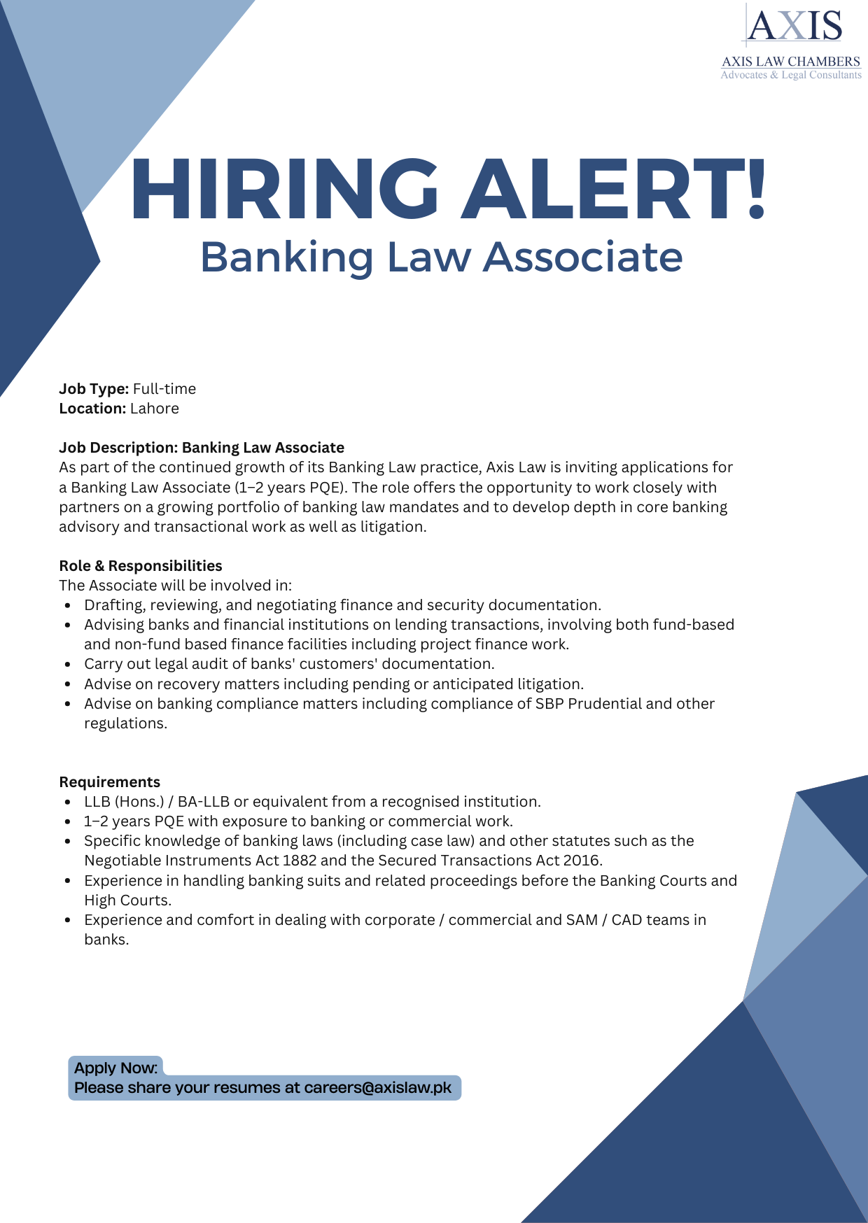 Hiring Alert! Banking Law Associate